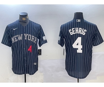 Men's New York Yankees #4 Lou Gehrig Navy Pinstripe Fashion Cool Base Jerseys