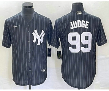 Men's New York Yankees #99 Aaron Judge Black Pinstripe Cool Base Stitched Baseball Jersey