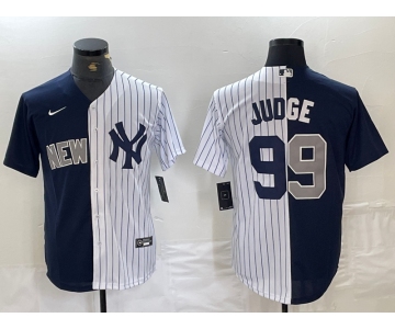 Men's New York Yankees #99 Aaron Judge Navy White Split Stitched Baseball Jersey