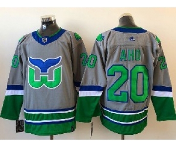 Mens Nhl Hartford Whalers #20 Aho Gray 2021 Reverse Retro Alternate Adidas Jersey