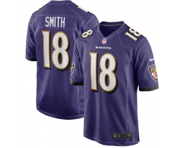 Men's Nike #18 Roquan Smith Purple Baltimore Ravens Game Player Jersey