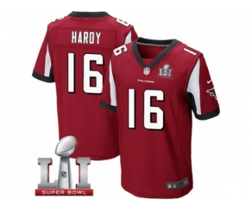 Men's Nike Atlanta Falcons #16 Justin Hardy Elite Red Team Color Super Bowl LI 51 NFL Jersey