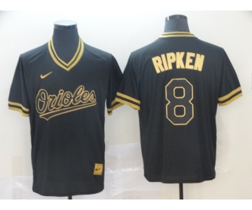 Men's Nike Baltimore Orioles #8 Cal Ripken Authentic Black Gold Fashion Baseball Jersey