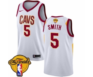 Men's Nike Cleveland Cavaliers #5 J.R. Smith Authentic White 2018 NBA Finals Bound NBA Jersey - Association Edition
