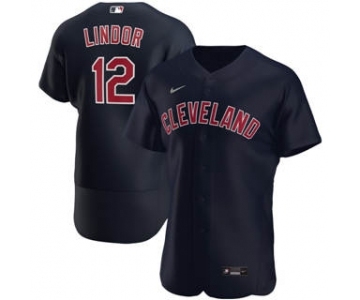 Men's Nike Cleveland Indians #12 Francisco Lindor 2020 Navy Alternate Authentic Player Baseball Jersey