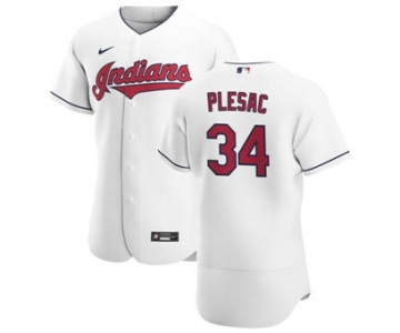 Men's Nike Cleveland Indians #34 Zach Plesac White Home 2020 Authentic Team Baseball Jersey