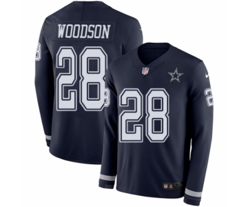 Men's Nike Dallas Cowboys #28 Darren Woodson Limited Navy Blue Therma Long Sleeve NFL Jersey