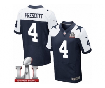 Men's Nike Dallas Cowboys #4 Dak Prescott Elite Navy Blue Throwback Alternate Super Bowl LI NFL Jersey