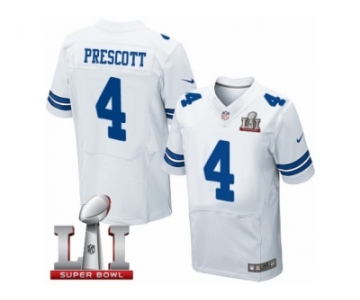 Men's Nike Dallas Cowboys #4 Dak Prescott Elite White Super Bowl LI NFL Jersey