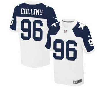 Men's Nike Dallas Cowboys #96 Maliek Collins Elite White Throwback Alternate NFL Jersey