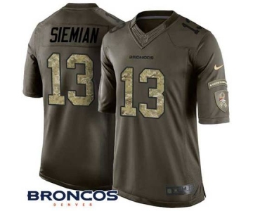 Your Position: Home>NIKE NFL Jerseys>Nike Denver Broncos>Limited jerseys>Men's Nike Denver Broncos #13 Trevor Siemian Limited Green Salute to Service NFL Jersey