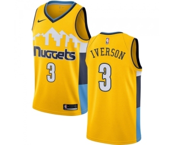 Men's Nike Denver Nuggets #3 Allen Iverson Swingman Gold Alternate NBA Jersey Statement Edition