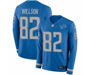 Men's Nike Detroit Lions #82 Luke Willson Limited Blue Therma Long Sleeve NFL Jersey