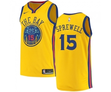 Men's Nike Golden State Warriors #15 Latrell Sprewell Swingman Gold NBA Jersey - City Edition
