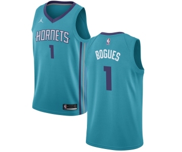 Men's Nike Jordan Charlotte Hornets #1 Muggsy Bogues Swingman Teal NBA Jersey - Icon Edition