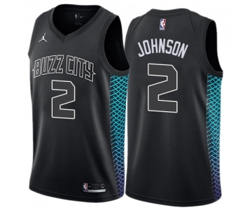 Men's Nike Jordan Charlotte Hornets #2 Larry Johnson Authentic Black NBA Jersey - City Edition