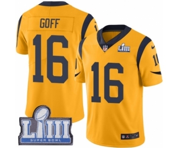 Men's Nike Los Angeles Rams #16 Jared Goff Limited Gold Rush Vapor Untouchable Super Bowl LIII Bound NFL Jersey