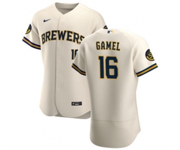 Men's Nike Milwaukee Brewers #16 Ben Gamel Cream Home 2020 Authentic Player Baseball Jersey
