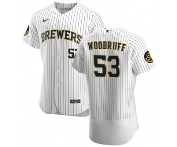 Men's Nike Milwaukee Brewers #53 Brandon Woodruff White Home 2020 Authentic Player Baseball Jersey