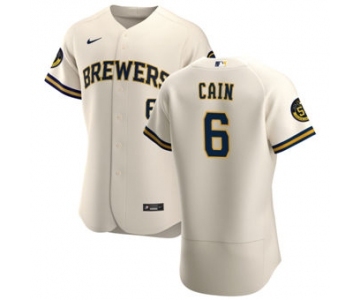 Men's Nike Milwaukee Brewers #6 Lorenzo Cain Cream Home 2020 Authentic Player Baseball Jersey