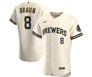 Men's Nike Milwaukee Brewers #8 Ryan Braun 2020 Cream Home Authentic Player Baseball Jersey