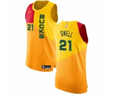 Men's Nike Milwaukee Bucks #21 Tony Snell Authentic Yellow NBA Jersey - City Edition