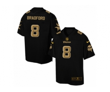 Men's Nike Minnesota Vikings #8 Sam Bradford Elite Black Pro Line Gold Collection NFL Jersey