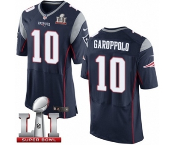 Men's Nike New England Patriots #10 Jimmy Garoppolo Elite Navy Blue Team Color Super Bowl LI 51 NFL Jersey