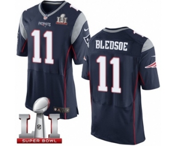 Men's Nike New England Patriots #11 Drew Bledsoe Elite Navy Blue Team Color Super Bowl LI 51 NFL Jersey