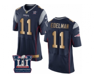 Men's Nike New England Patriots #11 Julian Edelman Elite Navy Gold Team Color Super Bowl LI Champions NFL Jersey