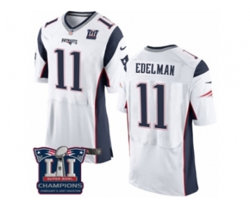 Men's Nike New England Patriots #11 Julian Edelman Elite White Super Bowl LI Champions NFL Jersey