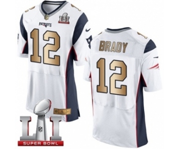 Men's Nike New England Patriots #12 Tom Brady Elite White-Gold Super Bowl LI 51 NFL Jersey