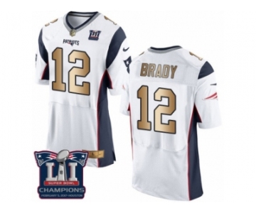 Men's Nike New England Patriots #12 Tom Brady Elite White Gold Super Bowl LI Champions NFL Jersey