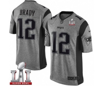 Men's Nike New England Patriots #12 Tom Brady Limited Gray Gridiron Super Bowl LI 51 NFL Jersey