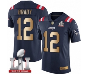 Your Position: Home>NIKE NFL Jerseys>Nike New England Patriots>2017 Super Bowl LI 51 NFL Jersey>Men Super Bowl LI 51 NFL Jersey>Men's Nike New England Patriots #12 Tom Brady Limited Navy-Gold Rush Super Bowl LI 51 NFL Jersey
