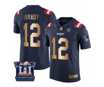 Men's Nike New England Patriots #12 Tom Brady Limited Navy Gold Rush Super Bowl LI Champions NFL Jersey