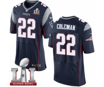 Men's Nike New England Patriots #22 Justin Coleman Elite Navy Blue Team Color Super Bowl LI 51 NFL Jersey