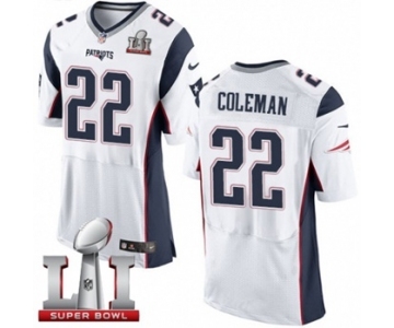 Men's Nike New England Patriots #22 Justin Coleman Elite White Super Bowl LI 51 NFL Jersey