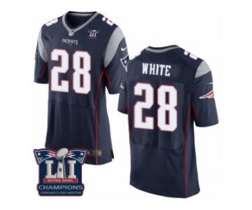 Men's Nike New England Patriots #28 James White Elite Navy Blue Team Color Super Bowl LI Champions NFL Jersey