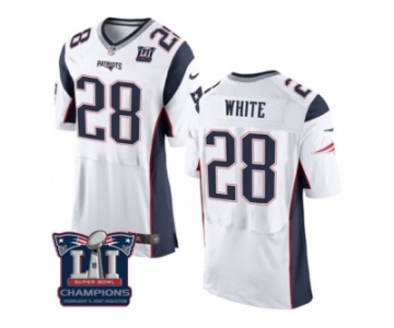 Men's Nike New England Patriots #28 James White Elite White Super Bowl LI Champions NFL Jersey