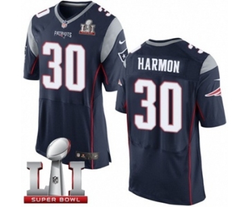 Men's Nike New England Patriots #30 Duron Harmon Elite Navy Blue Team Color Super Bowl LI 51 NFL Jersey