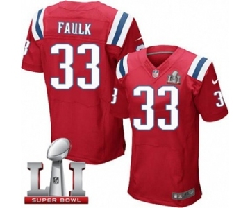 Men's Nike New England Patriots #33 Kevin Faulk Elite Red Alternate Super Bowl LI 51 NFL Jersey
