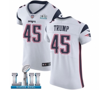 Men's Nike New England Patriots #45 Donald Trump White Vapor Untouchable Elite Player Super Bowl LII NFL Jersey