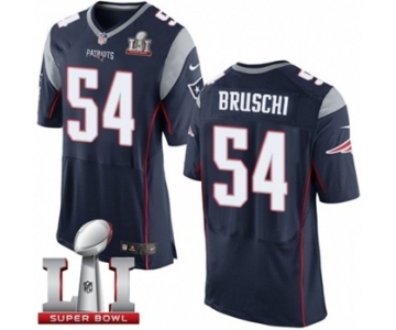 Men's Nike New England Patriots #54 Tedy Bruschi Elite Navy Blue Team Color Super Bowl LI 51 NFL Jersey