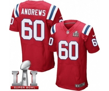 Men's Nike New England Patriots #60 David Andrews Elite Red Alternate Super Bowl LI 51 NFL Jersey