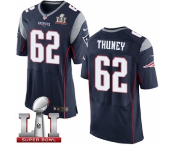 Men's Nike New England Patriots #62 Joe Thuney Elite Navy Blue Team Color Super Bowl LI 51 NFL Jersey