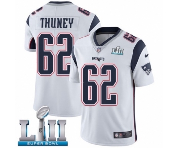 Men's Nike New England Patriots #62 Joe Thuney White Vapor Untouchable Limited Player Super Bowl LII NFL Jersey