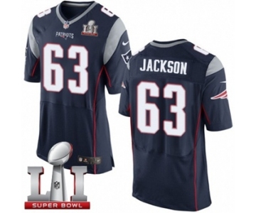 Men's Nike New England Patriots #63 Tre Jackson Elite Navy Blue Team Color Super Bowl LI 51 NFL Jersey