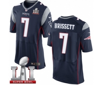 Men's Nike New England Patriots #7 Jacoby Brissett Elite Navy Blue Team Color Super Bowl LI 51 NFL Jersey