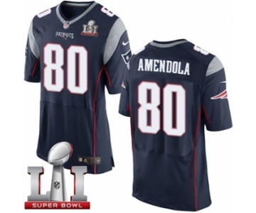 Men's Nike New England Patriots #80 Danny Amendola Elite Navy Blue Team Color Super Bowl LI 51 NFL Jersey